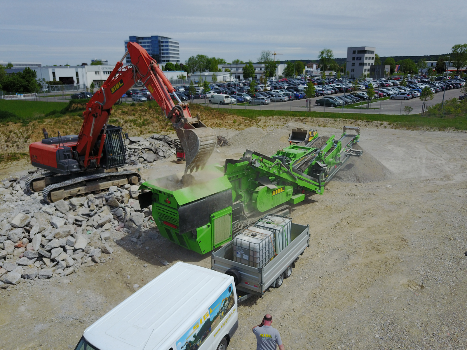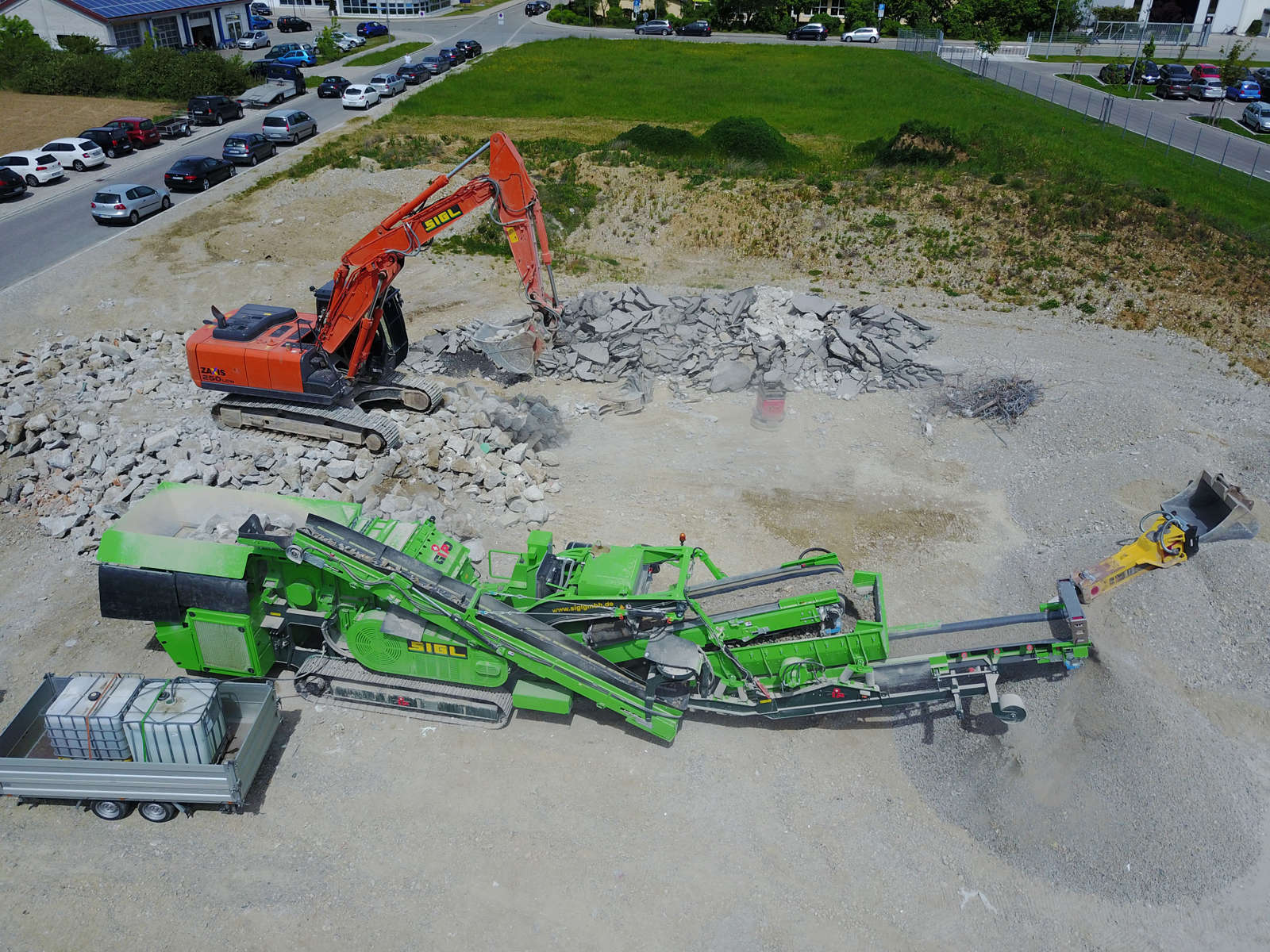 Brechen und Sieben von Abbruchmaterial